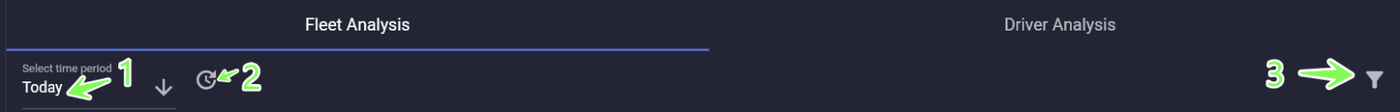 Fleet Analysis - displays key performance metrics for all of the devices in your account. The default time period is the current day, but you you adjust the time period