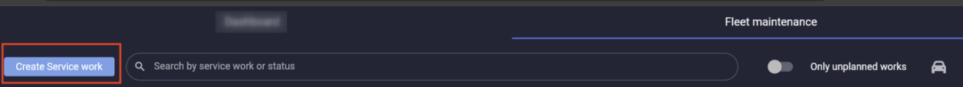 To create a service work click the 'Create Service work' button in the 'Fleet maintenance' tab.